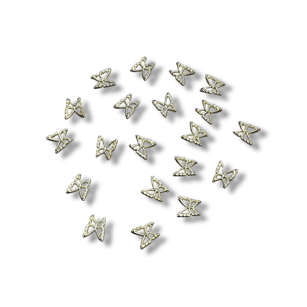 Små fina fjärilar i metall, guld, roséguld och silver - 15 st. av varje färg.